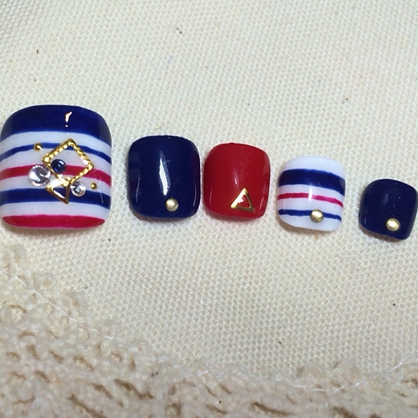 赤で作るマリンネイルは、シンプルかつ大胆に♪
