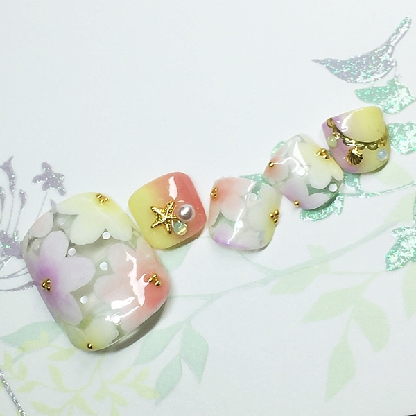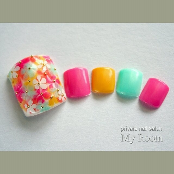 夏は足下もカラフルに!サンダルを彩る華やか'フットネイル'集*