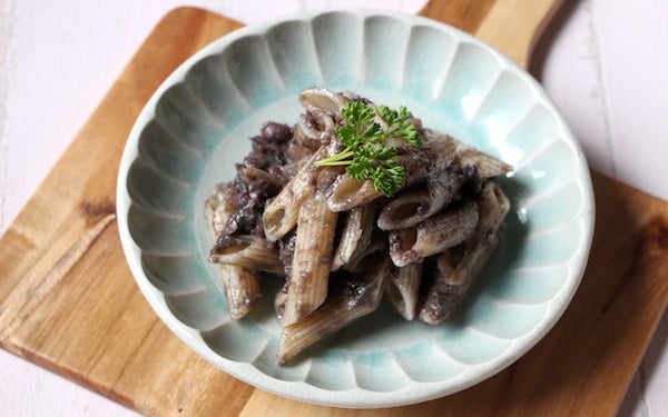 塩ゆでしたパスタをオリーブオイルで和えて、「万能小豆ペースト」を加えれば、コクのあるパスタが味わえます。