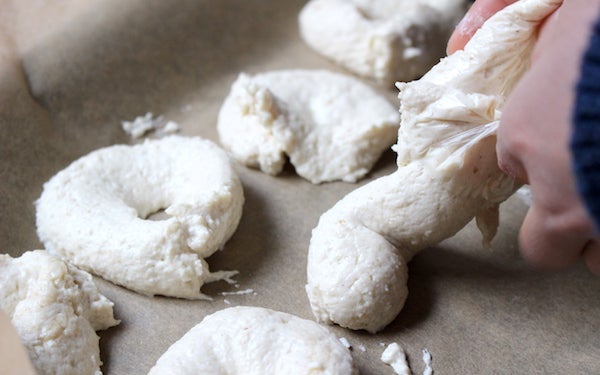 生地をビニール袋に入れて、しぼり出すとドーナツ型が簡単にでき上がりますよ!