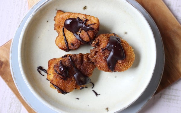 「カリふわ豆腐ドーナッツ」は、ほんのり甘くてジュワッとジューシーだからそのままでも満足できますが、アレンジもいろいろ楽しめます。●アレンジ1 「チョコがけドーナッツ」