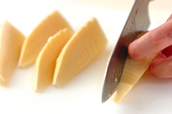 ・水煮タケノコは1本分を縦8等分に切り、半分は縦4等分に切る。
