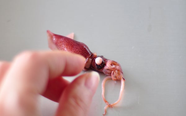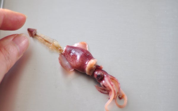 ふたつついている目は、親指の爪にひっかけて取ります。目があらかじめ取れているものもあります。