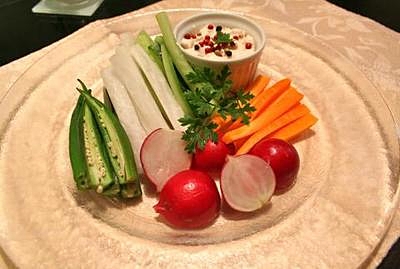 生野菜の豆腐ペースト&鶏肉のカレーマヨネーズソース