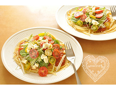 生野菜のせ・ミートパスタ