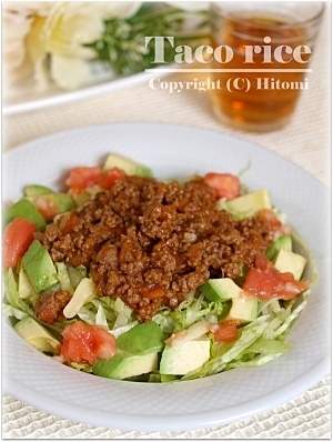 サラダ感覚でもりもり食べられるタコライス♪スパイシーなひき肉にクリーミーなアボカド、いろいろな素材を味わってください!