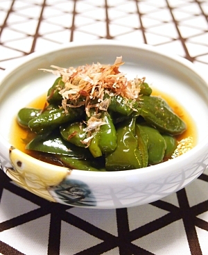 楽天レシピ:「レンジで簡単 とろけるピーマンの煮びたし 」より