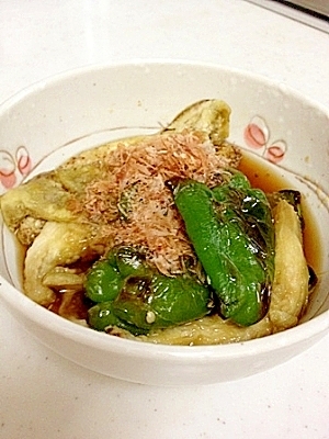 楽天レシピ:「焼き茄子と焼きピーマンのおひたし 」より