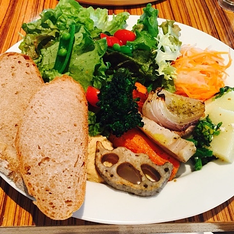 季節のべジプレートがライ麦パン付きで平日1000円で食べられます!