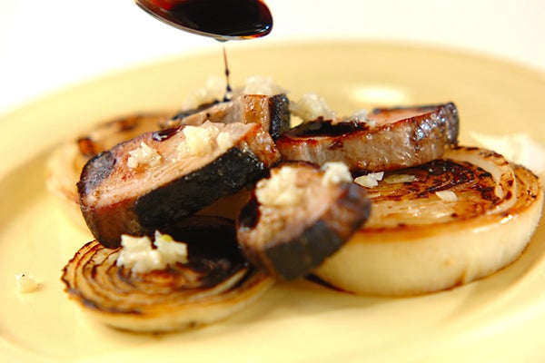 ガーリックを効かせた男前な料理かと思いきや、仕上げにバルサミコ酢をかけることでさっぱり上品な味わいに。