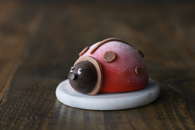 赤いベリーのゼリーでコーティングし、チョコレートでつくられた表情がとってもかわいい♪
