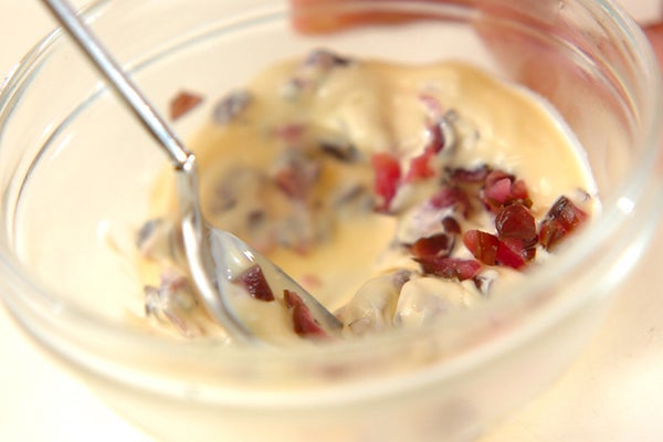 1、鶏の唐揚げは袋の表示通りに解凍する。<しばマヨ>の材料を混ぜ合わせる。