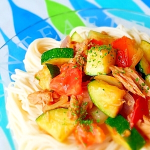 【夏‼️ズッキーニ・トマトのイタリアン〜そうめん♪】