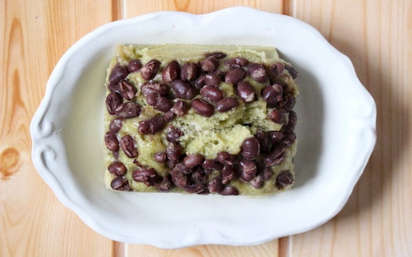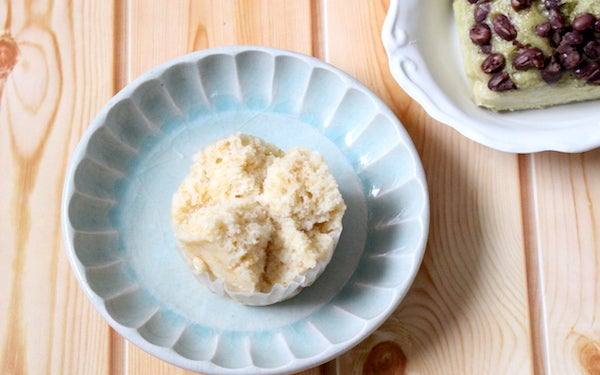 生地の液体に抹茶を加え、型に入れたらあんこをのせて蒸せば「抹茶あずき蒸しパン」のできあがり! 抹茶をココアに変えたり、生地にレーズンやナッツを混ぜ込んだり、型に生地を入れる時に真ん中にジャムを忍ばせたりと、アレンジは自由自在です。
