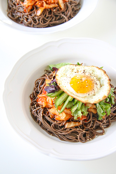 そばにキムチをトッピング