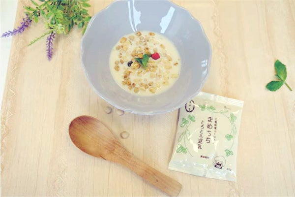 原材料に使っている大豆は、地元三重県産のふくゆたか 。大豆が持つ、甘み、コクのバランスの良い豆を厳選しているそう。そのまま食べてもよし、いろんなトッピングとしても。シリアル、フルーツにヨーグルトのようにかけたり、ジャムを加えたりアレンジ次第でいろいろな味が楽しめます。
