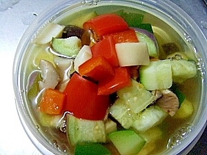 楽天レシピ:「さっぱりお酢の夏野菜冷製スープ 」より