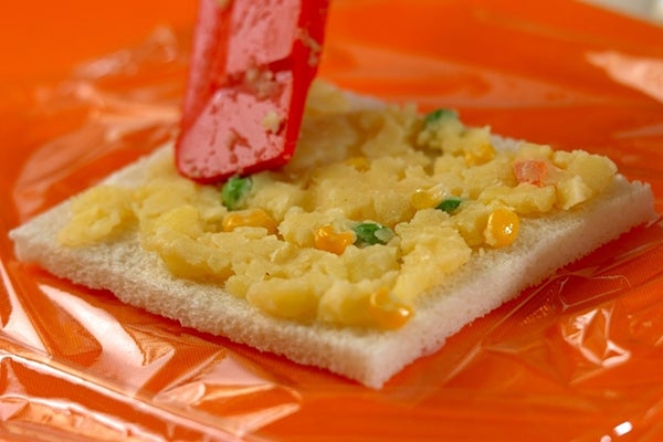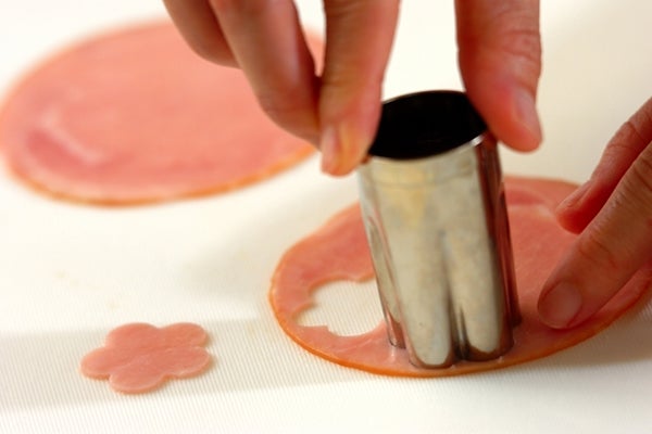 ・ハム、スライスチーズはお好みの型で抜く。ソーセージは2~3カ所斜めに切り込みを入れ、フライパンで焼く。