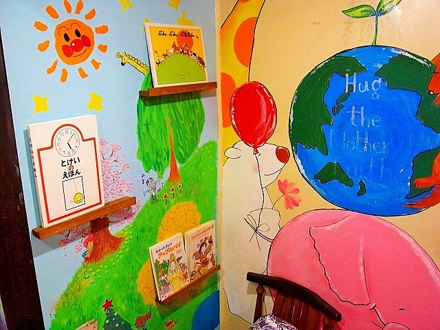 実はこちら、絵本カフェ。壁には絵本がたくさん並んでいます。