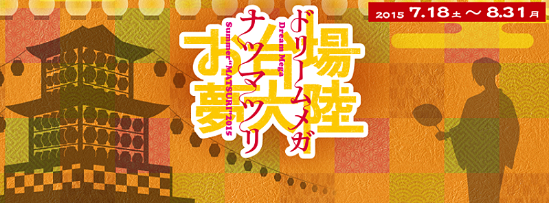 お台場夢大陸〜ドリームメガナツマツリ〜 - フジテレビ - オフィシャルサイト。2015年7月18日(土)〜8月31日(月)45日間 夢の大陸お台場で、今年の夏は朝から晩までナツマツリ!
