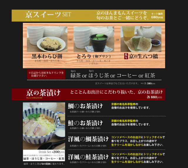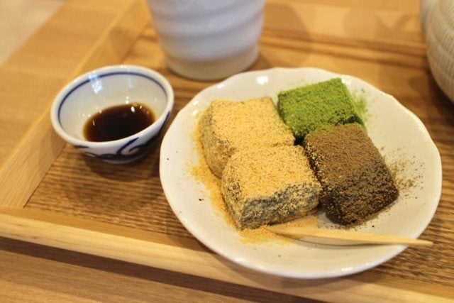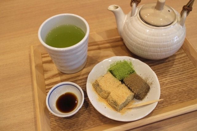 お得なスイーツセットでは、黒本わらび餅、生八つ橋、「とろり」と呼ばれる和プリンの中から選ぶことができます。ドリンクは緑茶、ほうじ茶、コーヒー、紅茶から選ぶことができるのですが、せっかくなら緑茶かほうじ茶で、和のペアリングを楽しむのがおすすめ!