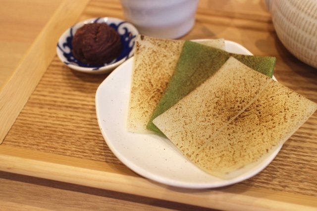 京都と言えば、八つ橋も有名ですよね。ここで食べられる八つ橋は表面を炙ってあるのが特徴。香ばしさが加わり、これは八つ橋の新しい楽しみ方ではないでしょうか。