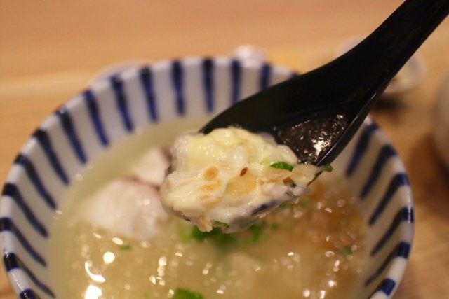 スプーンですくうと、とろりととけるチーズが!見た目は和風の鯛茶漬けなのですが、ひと口食べるとイメージしているお茶漬けとは全然違う!リゾットともまた少し違う…これはここでしか楽しめない味です。