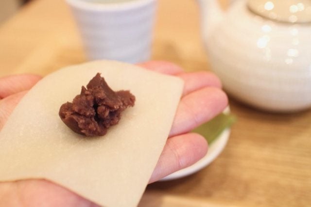 炙ってある面を裏返して添えてあるあんこをのせ、あんこを巻いて食べます。八つ橋はお土産でいただくものと思っていましたが、カフェで八つ橋を食べられるなんて和菓子好きには嬉しい限りです♪