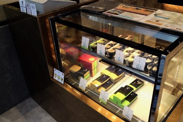 通常プリンを作るときは卵を使用しますが、こちらは卵を使わずにわらび粉で固めているのも特徴。京都のお店にいる職人さんが、「日本一おいしい和プリンを作りたい!」という思いで作られたそう。コクがあり、優しい甘さのプリンです。こちらは、黒ごま、きなこ、ほうじ茶、抹茶の4種類の展開です。