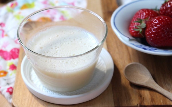 雨が多い季節になりました。寒暖差も激しく、冷たいものが恋しい時期だけどおなかを壊さないか心配になりますね。今回は、小さい子にも安心のデザート「甘酒豆乳プリン」をご紹介します。常温で固まる寒天を使っているので、体の冷やしすぎも防げます。ヨーグルト感覚でさっぱり食べられるお手軽デザートです。