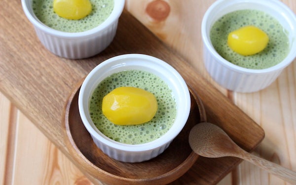 抹茶を加えれば、和風のプリンが楽しめます。いちごジャムを加えていちごプリン、豆乳の半量をりんごジュースに変えてりんごプリンなど、アレンジは自在です。