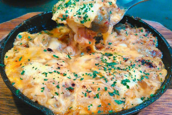 ▲TACOYAcoco/名物牛スジどて煮込のふわとろたまごチーズオムとじ