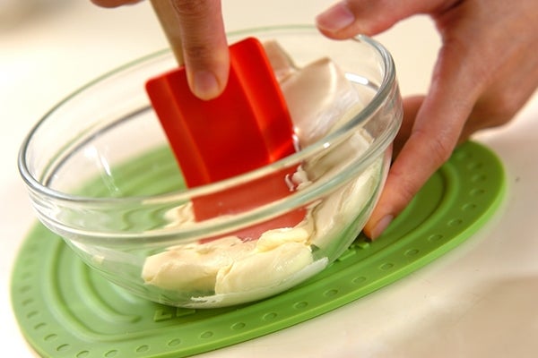 1、クリームチーズは電子レンジで20~30秒加熱し、柔らかくしておく。