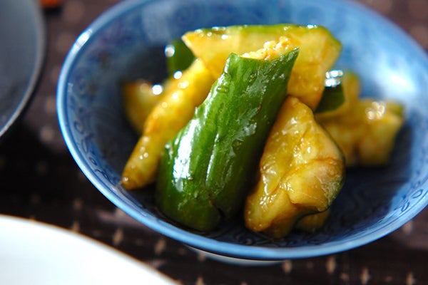 キュウリはすりこぎで叩いて割ることで味が染みて、おいしく仕上がりますよ。