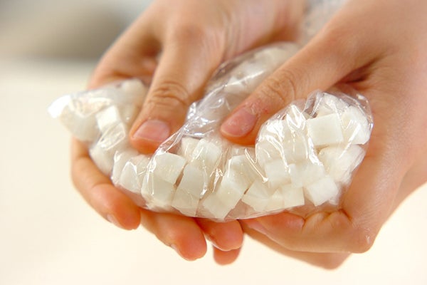 ・大根は皮をむき、1cm角に切る。ビニール袋に塩と共に入れてよく塩をもみ込み、水気が出てきたらしっかり絞る。