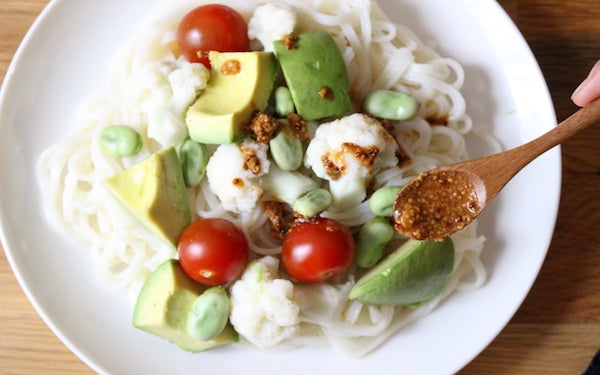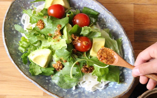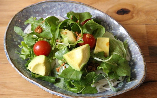 材料さえそろっていれば、帰ってきてから10分で食卓につける「ごまだれサラダうどん」。家にある素材で、アレンジ可能ですが、アボカドなどの子どもが好きな野菜を入れると、野菜が苦手な子もくいつきが違いますよ。