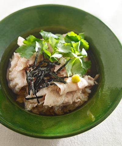 もうひとつ、「豚しゃぶスープごはん」も親子で食べたい夏向きの一品。お肉たっぷりなので子どもも大満足。それでいてさっぱり食べられるママ好みの味でもあります。