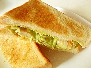 楽天レシピ:「ぷりぷりエビ&アボカドのトーストサンド 」より