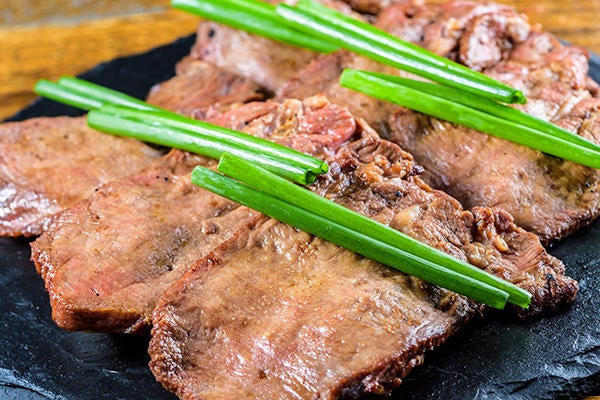 ▲『肉バル ブッチャーズ 八百八』豪快!厚切り牛タン 800円(税込) / 塩とオリーブオイルで味付けした肉厚なタンと、シャキシャキ食感で程よい辛味の万能ねぎが相性抜群。【前半】