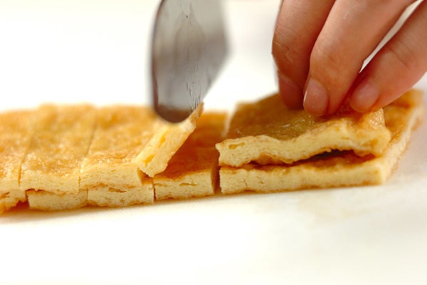 ・油揚げは熱湯をかけて油抜きをし、食べやすい大きさに切る。