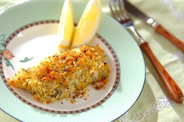 白身魚にパン粉をまぶして焼くレシピは一般的ですが、今回はそのパン粉に細かく刻んだミントの葉を加えて「爽快感」をプラス!