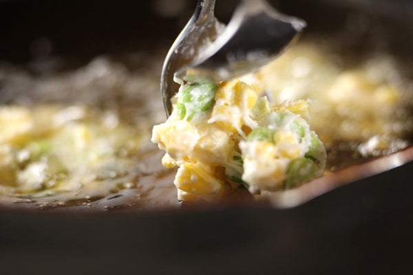 2、大きめのスプーンですくって、170℃の揚げ油の中へ落とし、固まったらひっくり返して、両面色よくカリッと揚げる。器に盛って、塩を添える。