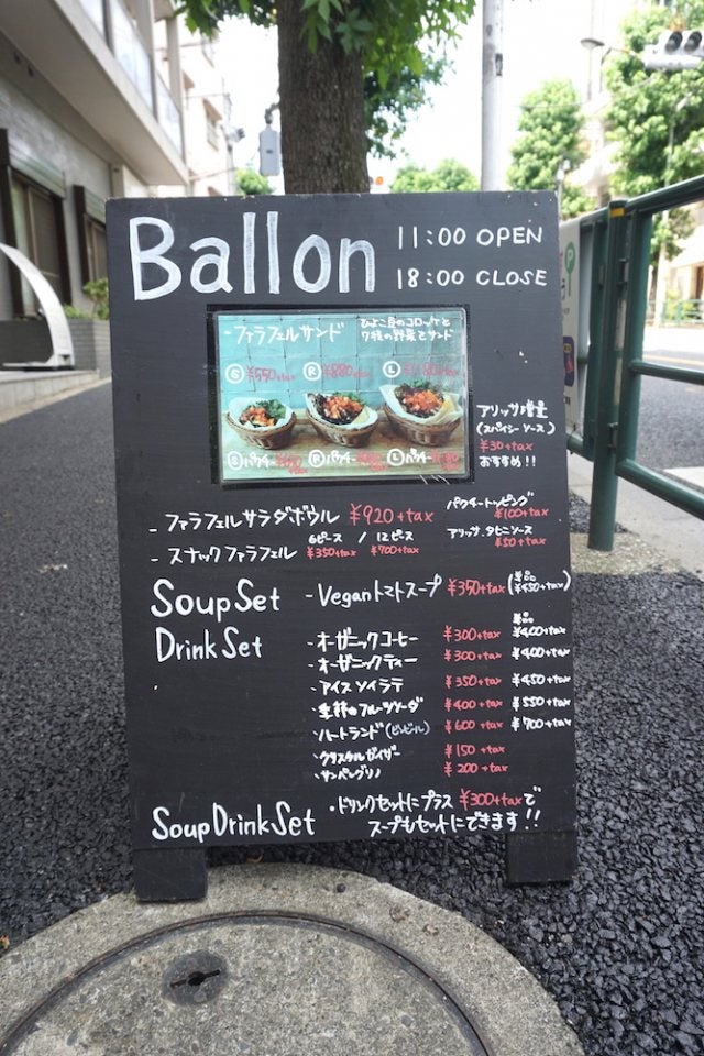 中目黒駅から徒歩2-3分、駒沢通り沿いにある「Ballon」は、100%ヴィーガン(植物由来の食材のみを使った料理のスタイル)の”ファラフェル”サンドで有名なお店。
