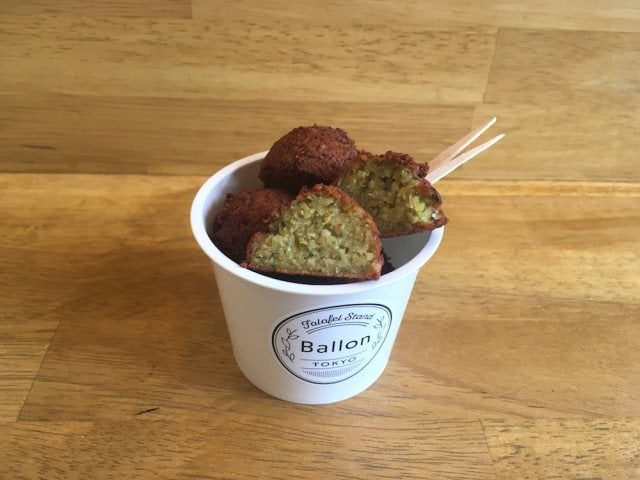 ファラフェルサンドで人気のBallonですが、ファラフェルのみの販売もしています。ファラフェルをはじめ日本ではまだヴィーガンフードがあまりメジャーではないことから、外国人のお客さんも多いそう。ファラフェルはすべてお店で1から手作りしており、カリカリな食感が特徴!これだけでもだいぶ満足感があります。