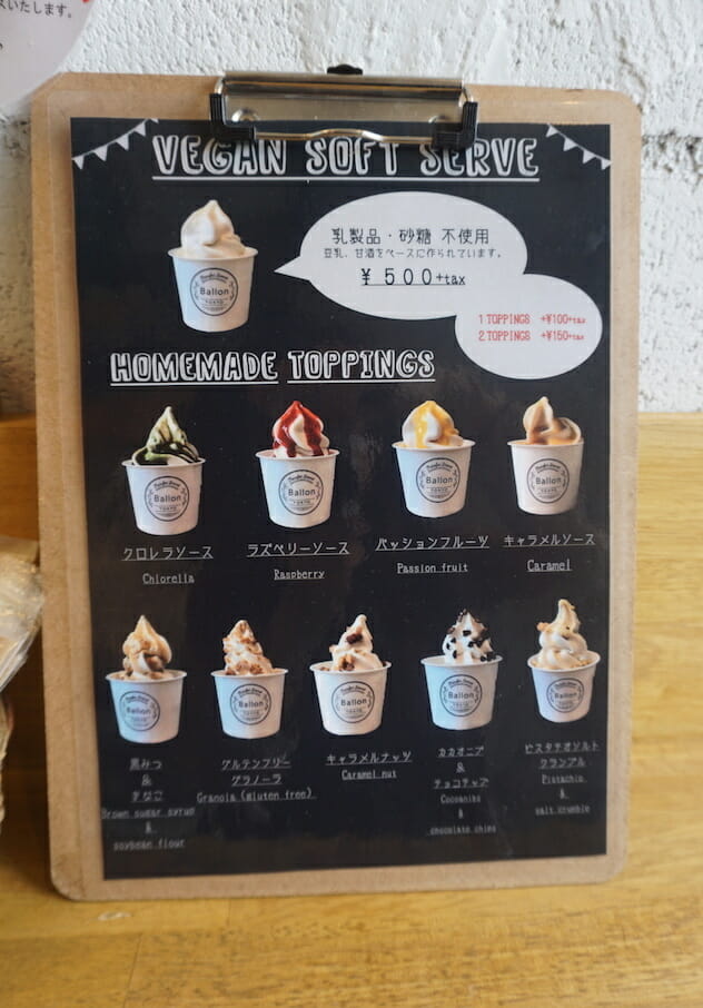 ヴィーガンソフトクリーム 500円 (1トッピング+100円、2トッピング+200円)