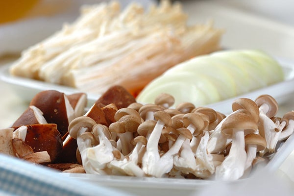・シメジ、エノキは石づきを切り落として小房に分ける。