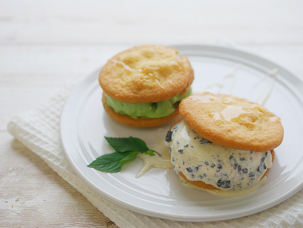 市販のクッキーにアイスをサンドしたアレンジレシピ。サク×とろの食感は、満足感もバッチリ。今回はグリーンティーとクッキー&クリームをサンドしましたが、これはどんなフレーバーでも100%おいしいと思います!しばらくするとアイスが溶けて、クッキーがひたひたに…。甘いアイスがしみたクッキーがなんとも堪らん味わいなのです(笑)♡