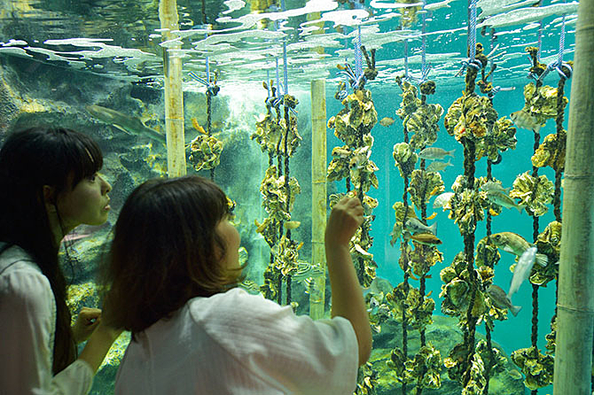 宮城県といえば、カキ!カキ養殖の展示もあり、ここも三陸の海をリアルに再現するため、ひと工夫!
