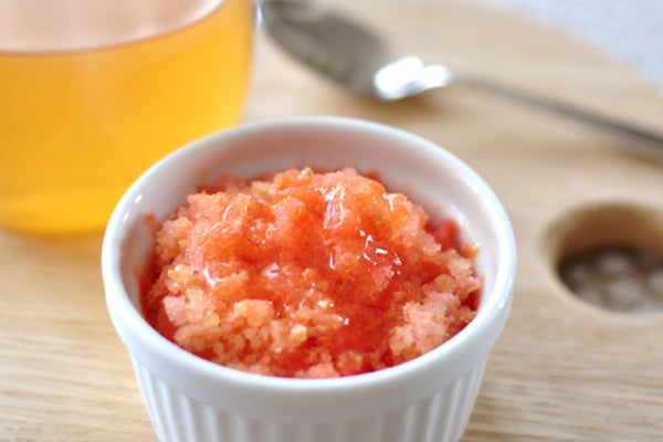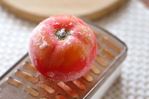まずはトマトを冷凍します。そしてこれをすりおろして、ハチミツをかければ、甘酸っぱいシャーベットのできあがり!