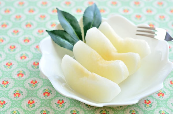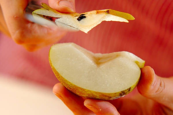 ・梨は芯を取って皮をむき、食べやすい大きさに切る。